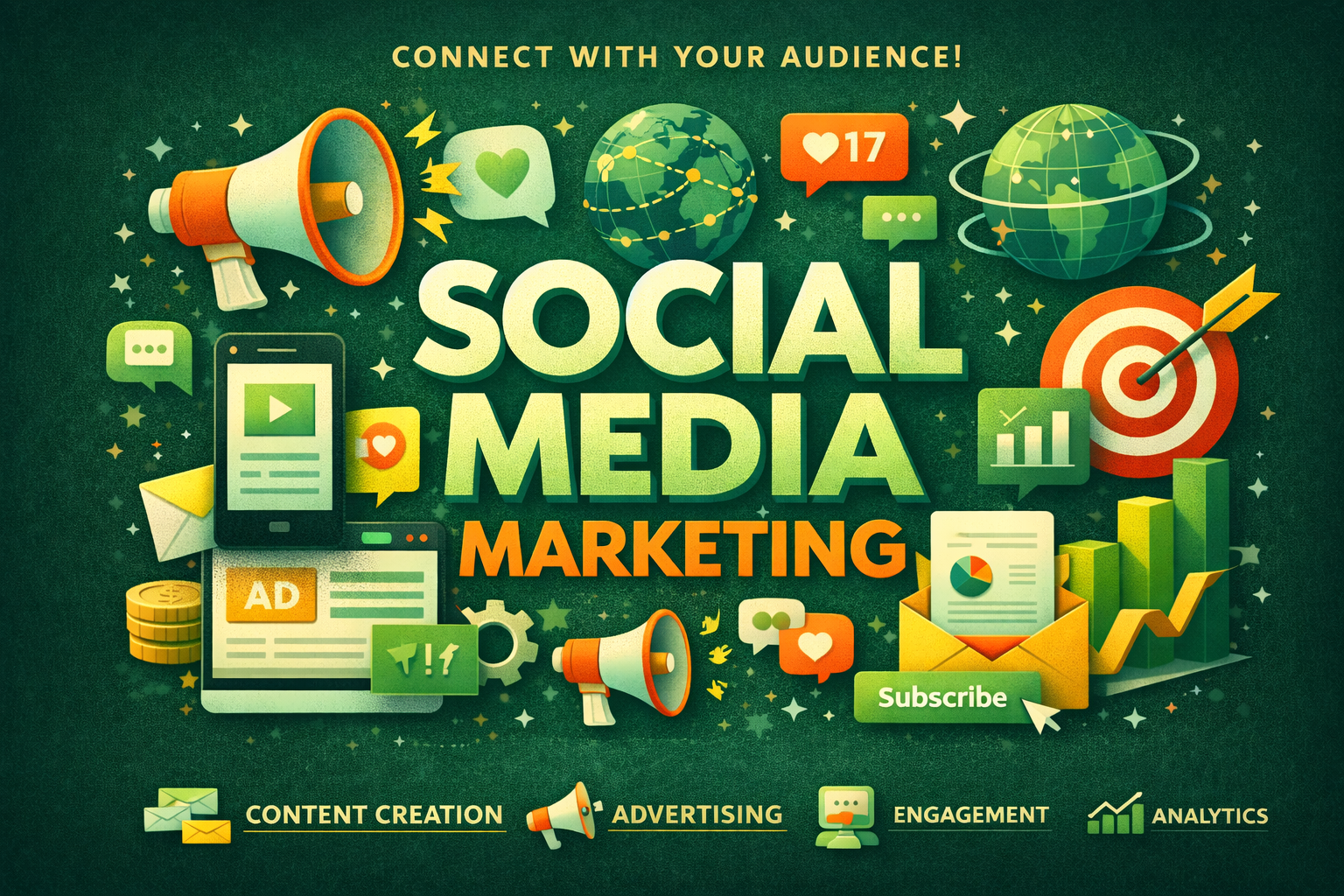 Social Media Marketing is the practice of promoting brands through social platforms like Instagram, Facebook, and LinkedIn. It helps businesses connect directly with their target audience. Through creative content and consistent engagement, brands build visibility and loyalty. Social media marketing increases brand awareness and drives website traffic. It also allows real-time interaction and customer feedback. When executed strategically, it boosts growth, trust, and conversions.
